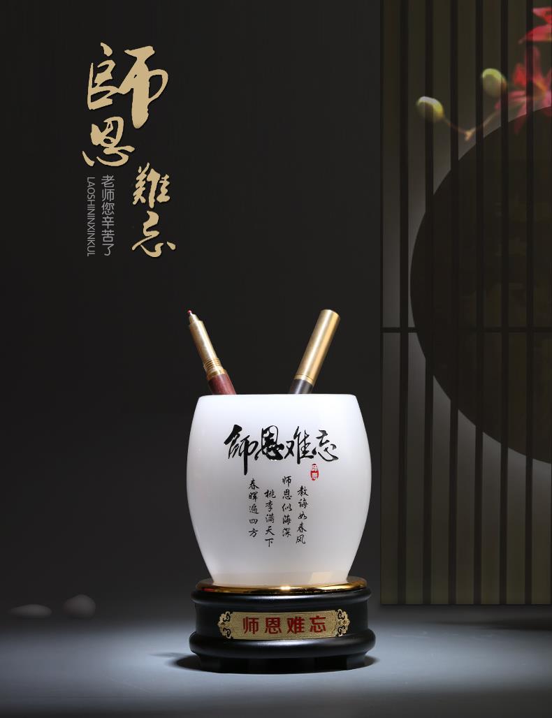 玉石办公笔筒礼品同学聚会工艺礼物恩师留念摆件文字可以定制